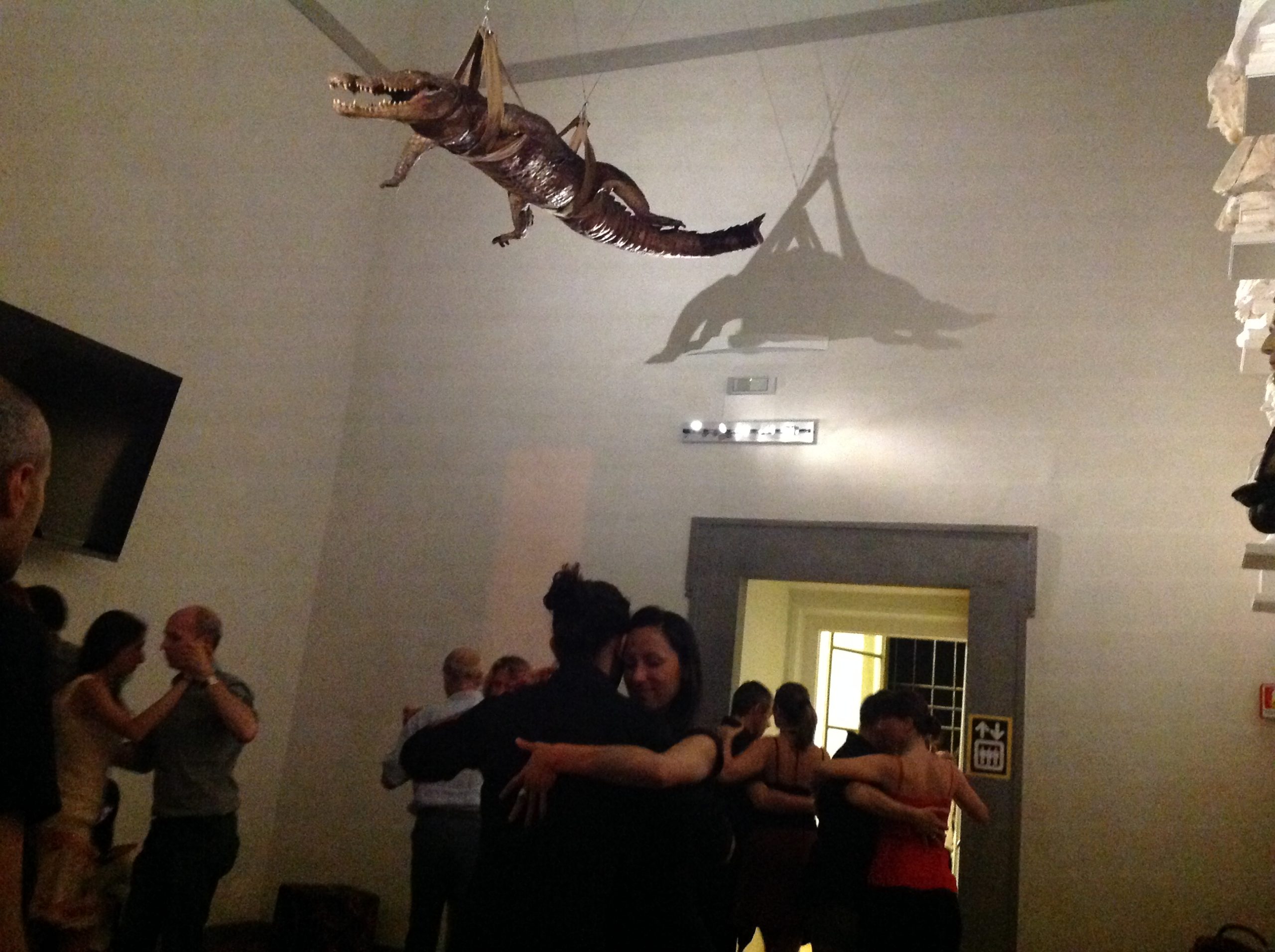 Dov’è finita la ballerina della sottoveste verde? E’ stata mangiata dal coccodrillo, ormai molti ne sono convinti. Ma la milonga al museo La Specola di Firenze, organizzata da Liberandotango, era iniziata bene, benissimo. Era anche proseguita meravigliosamente ballando sotto gli stucchi del salone centrale, nelle salette degli animali imbalsamati e nella sala di Galileo. E tra una tanda e l’altra si poteva prendere il  fresco nel parco adiacente ai giardini di Boboli oppure  visitare gratuitamente la mostra sui cristalli millenari. La serata dedicata alla Grande Bellezza del tango è stata magnifica.